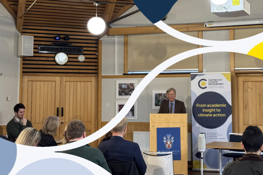 On 27 September, the Centre for Climate Engagement (CCE) at Hughes Hall hosted an event focused on the growing awareness of climate change and the responses from societies, governments, and businesses. Part of the University of Cambridge Alumni Festival, this session was led by Emily Farnworth, Director of the CCE, in discussion with John Elkington, a best-selling author and renowned “green business guru.” More →